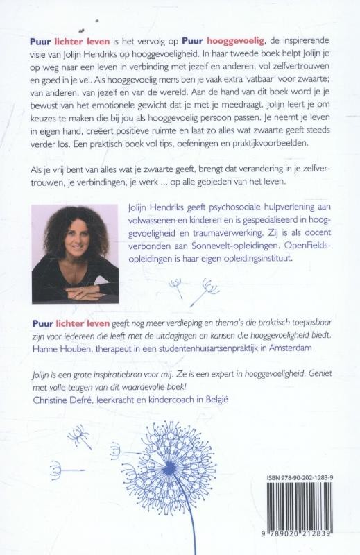 Puur lichter leven, loslaten wat zwaarte geeft van Jolijn Hendriks is een praktisch, niet-zweverig handboek voor hooggevoelige mensen.